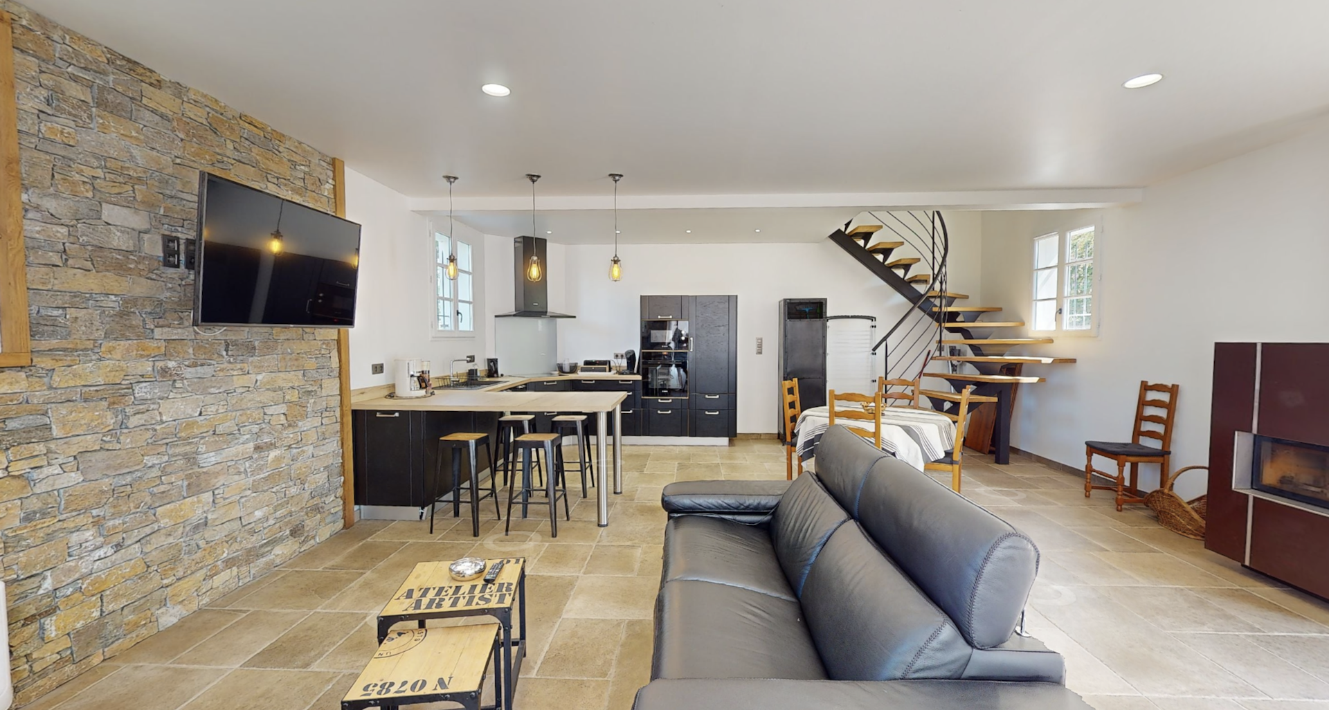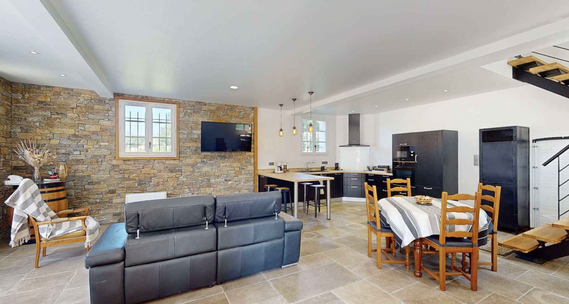 - Grand espace de vie lumineux (salon, salle à manger, cuisine équipée)